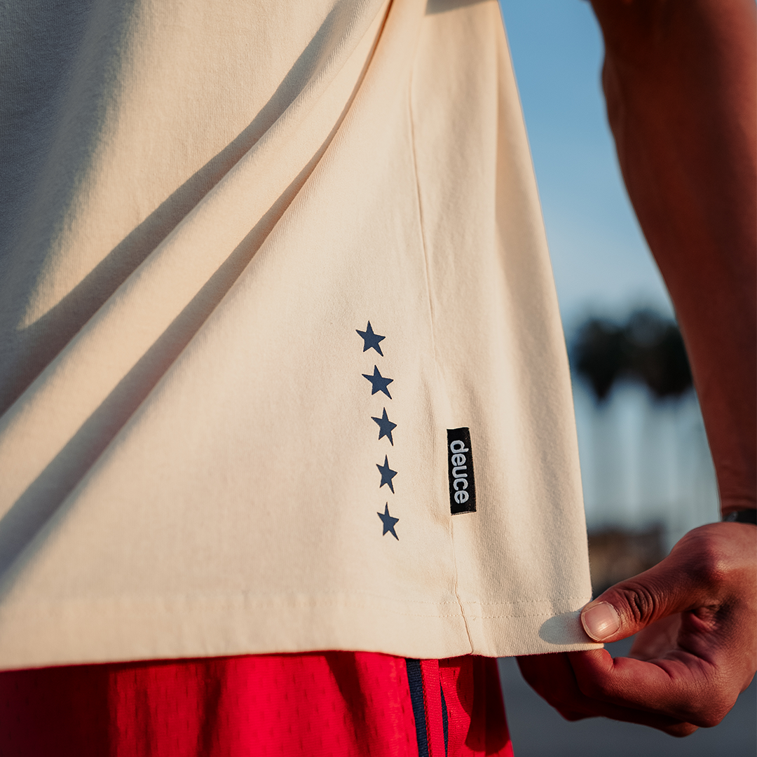 All-Star Weekend in Los Angeles is where basketball meets culture — where the hardwood runs into palm trees and the spotlight never turns off. The Deuce ASW LA Cream Tee captures that exact energy.