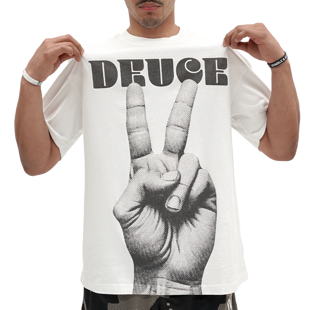 The streets aren’t ready for this look. The Deuce Peace Hand Tee is designed to stand out with a slightly oversized fit that brings effortless attitude to your everyday style. Featuring bold DEUCE lettering alongside the iconic Peace Hand graphic, this tee speaks volumes without saying a word.